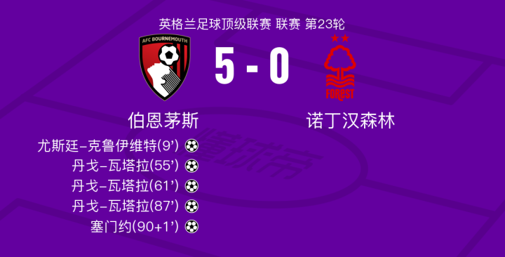 北京时间1月25日,英超联赛中的伯恩茅斯队迎战诺丁汉森林队。比赛中,丹戈-瓦塔拉的出色表现引人注目,他获得了全场最高的9.5分。而在对手诺丁汉森林队中,西尔科特-杜贝里的表现却只得到了5.8分。球员们的表现如何,我们一起来看看吧。